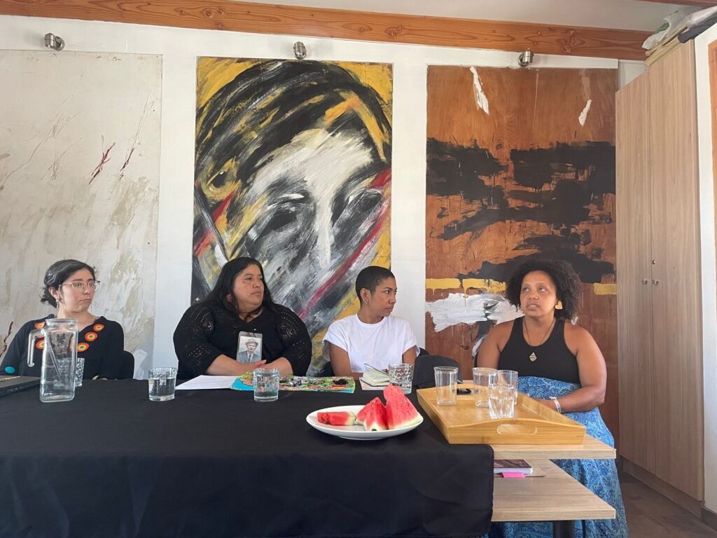 Enseguida, Kelly Ortega, filósofa y activista afrocaribeña colombiana, dirigió un diálogo crítico sobre el antirracismo, instando a repensar y transformar prácticas en el contexto chileno. Natalia Fuenzalida, integrante del taller de arpilleras «Retazos de Memoria: Arpilleristas de Paine» y nieta de un detenido desaparecido, compartió su testimonio sobre la lucha por la verdad, la justicia y la memoria histórica a través de las arpilleras. Finalmente, Emilia Gutiérrez Lucumí, antropóloga, mujer refugiada y miembro de la Organización de Migrantas, quien ofreció una perspectiva enriquecedora sobre la migración en Chile desde su experiencia personal y profesional.