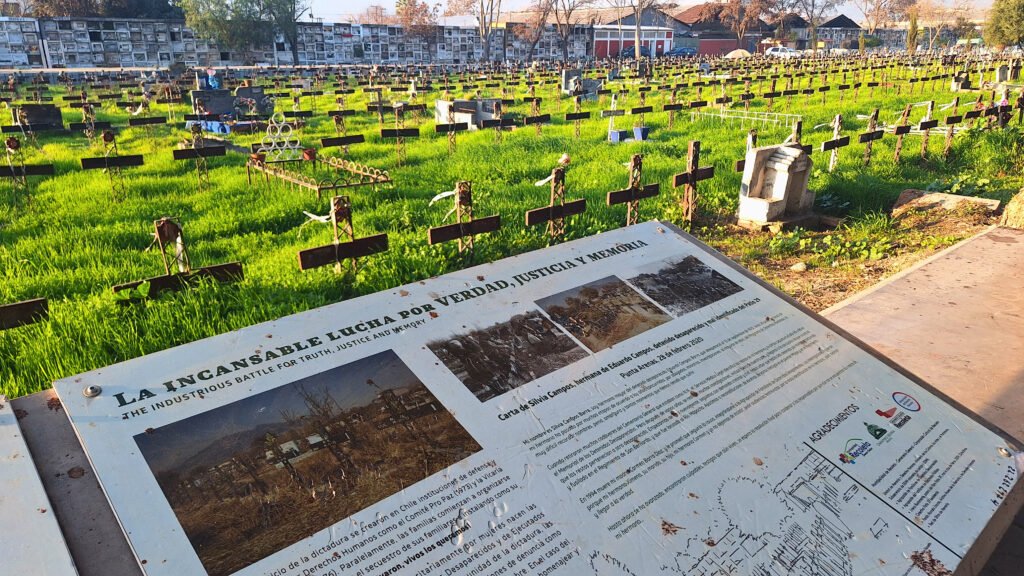 En su interior solo se ven cruces con un “NN” oxidadas por el paso de los ya 52 años que han transcurrido desde la instauración de la dictadura cívico militar en el país. Los espacios de ausencia que lo componen son una muestra de cómo la desaparición forzada ha sido utilizada por los Estados Latinoamericanos, incluyendo el Chileno, como crímenes de lesa humanidad de manera sistemática contra la población civil.